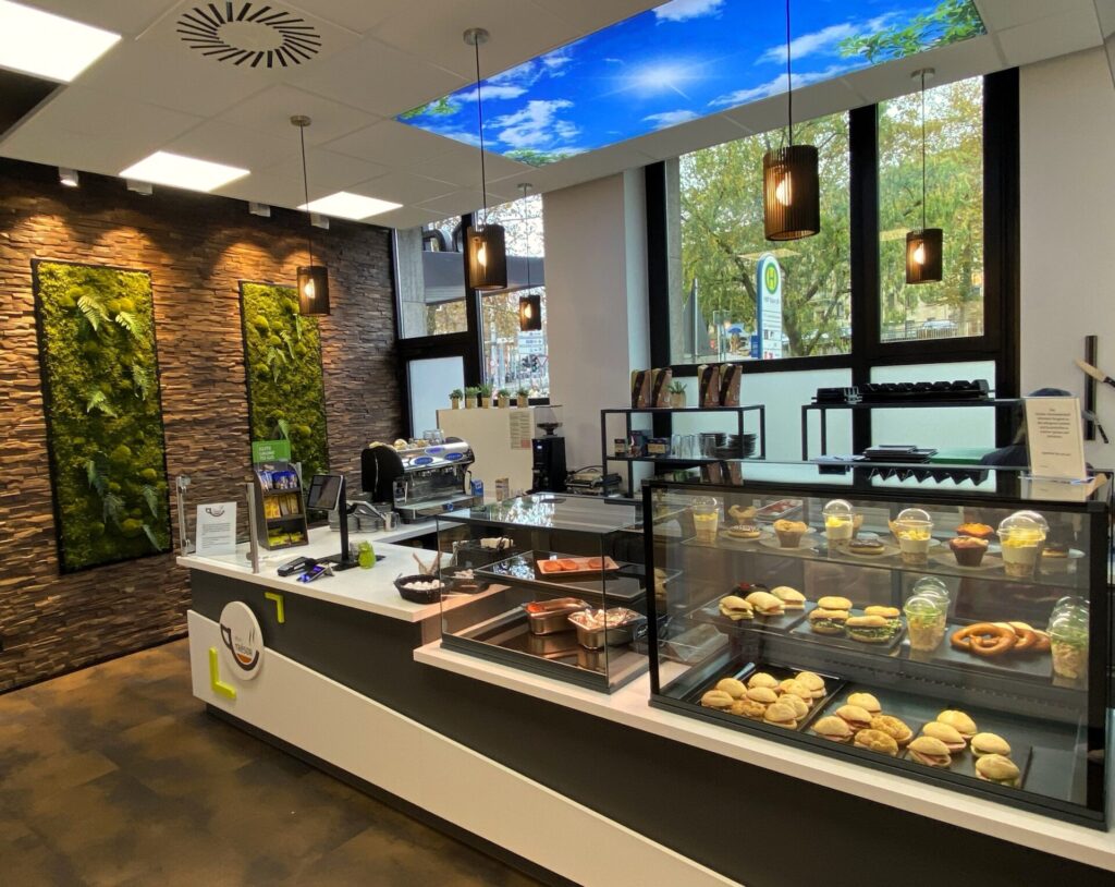 Das Bistro in unserer modernisierten Kundenhalle bietet nicht nur eine angenehme Atmosphäre, sondern auch eine große Auswahl an Speisen, Getränken und Kaffeespezialitäten. Darüber hinaus dient es als Ort des Austausches und der Gemeinschaft. Auch diese Räumlichkeit wird dazu beitragen unsere Mitarbeiterinnen und Mitarbeiter noch enger zusammenzubringen und den Teamgeist zu stärken.