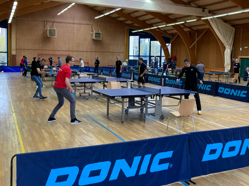 Im Anschluss hatten die Teilnehmerinnen und Teilnehmer in Spicheren die Möglichkeit, ihre sportlichen Fähigkeiten in einem Tischtennis-Teamturnier unter Beweis zu stellen. Die Wettkampfpausen wurden von allen Teilnehmern intensiv zur Netzwerkpflege und persönlichen Gesprächen genutzt. Das Event endete mit einem abendlichen Get Together in unserer Kundenhalle.