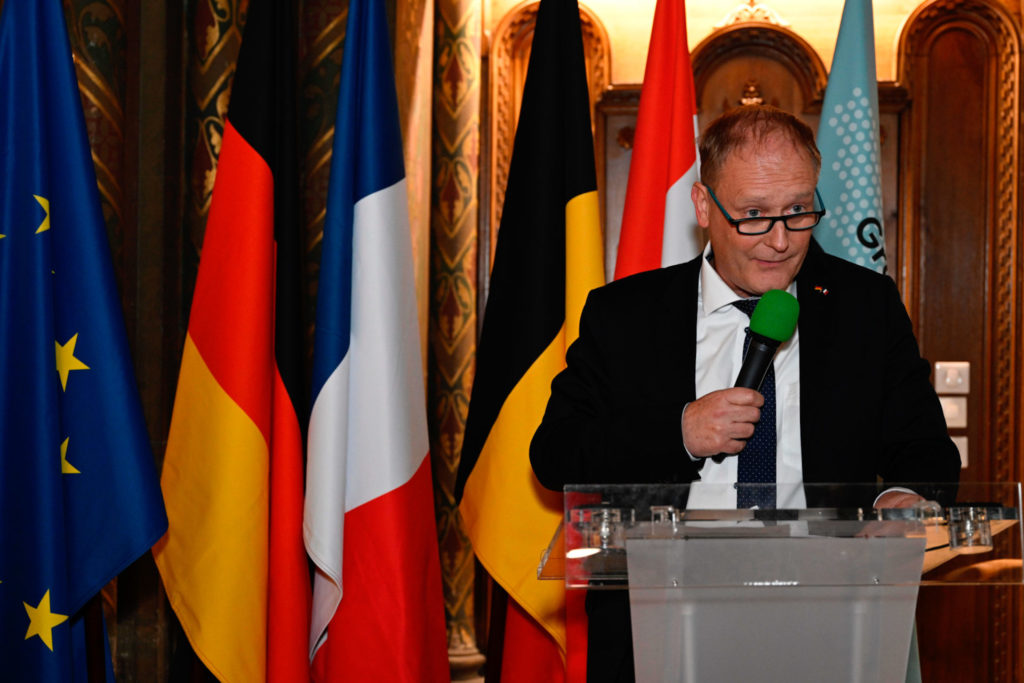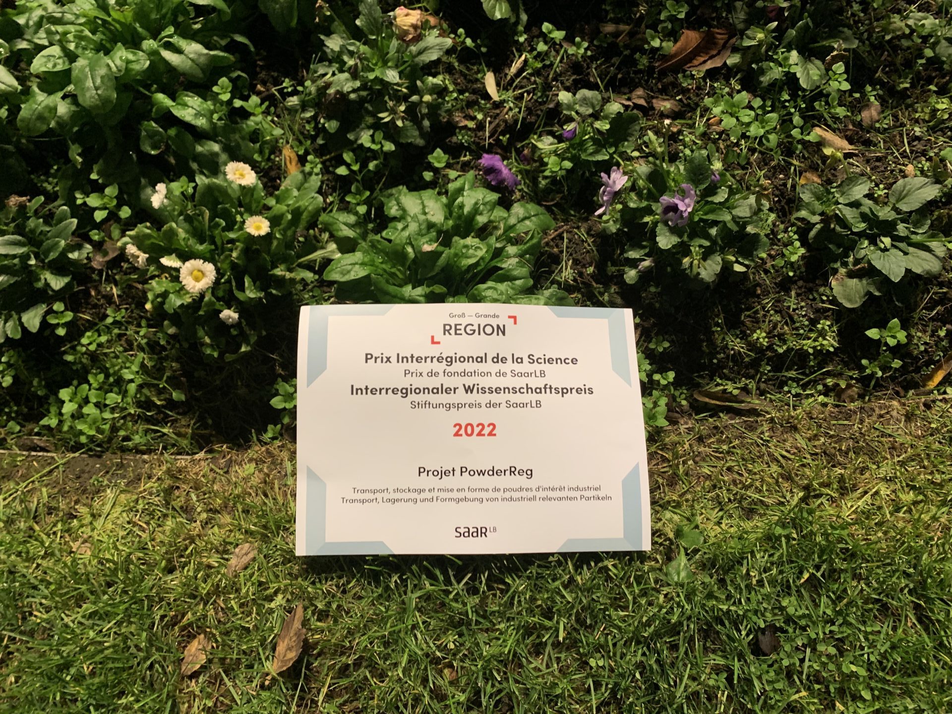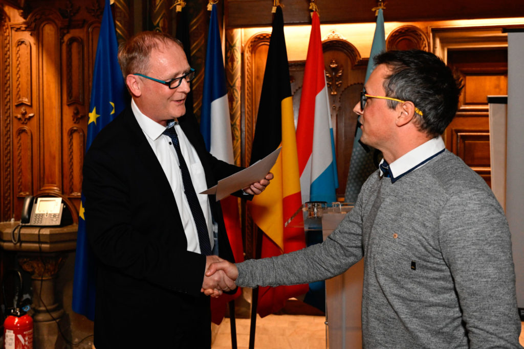 Bei der siebten Fachministerkonferenz für Hochschulwesen und Forschung der Großregion in Metz tauschten sich Verantwortliche zu den Entwicklungsperspektiven der grenzüberschreitenden Zusammenarbeit im Bereich Hochschulwesen und Forschung aus. Im Rahmen dessen überreichte Bereichsleiter Dr. Jochen Legleitner den Interregionale Wissenschaftspreis an das Projekt „PowderReg“, an dem Forschende der Universität Lothringen, Lüttich und Luxemburg sowie der Universität des Saarlandes und der Technischen Universität Kaiserslautern beteiligt waren.