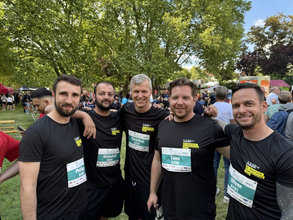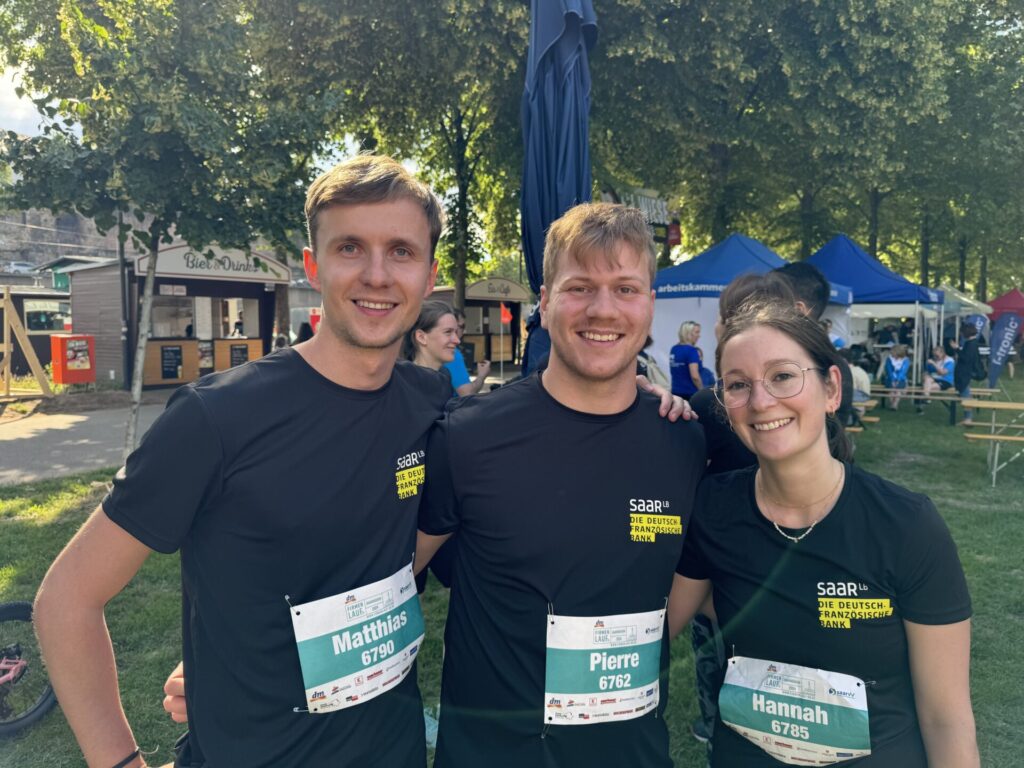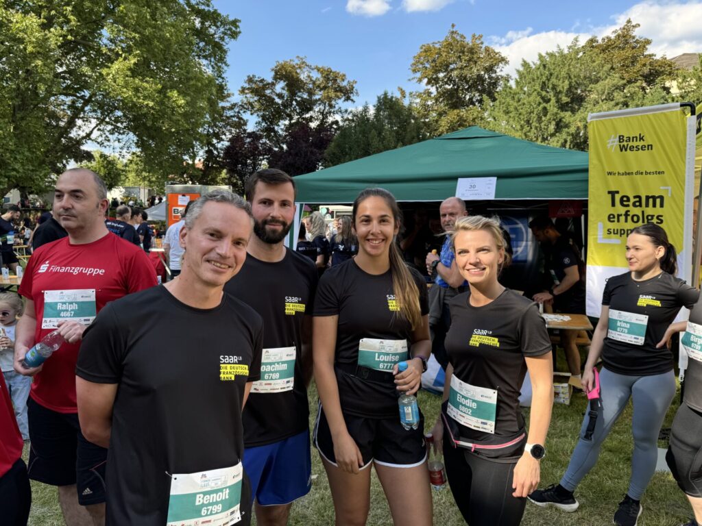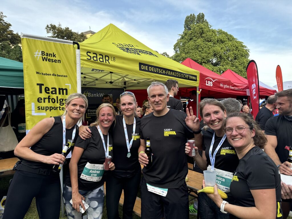 Auch in diesem Jahr waren die Mitarbeiterinnen und Mitarbeiter der SaarLB wieder mit gebrandeten Shirts und dem Claim: „Wir haben die besten inneren Schweinehundbesieger“ unterwegs und sorgten für tolle Stimmung vor und nach dem Lauf.
